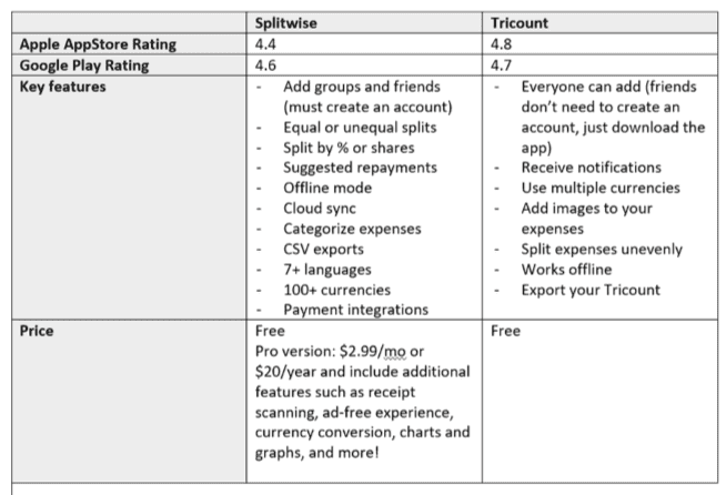 Here’s two reasons why I like Splitwise better. The first reason is because Splitwise has more options when it comes to splitting an expense, Tricount only had two options. The second reason is the payment integration. In my version of Tricount there aren’t payment integrations. When you want to settle you have to add it to your balance to zero it out and then go into Venmo, PayPal, or your preferred payment app, and pay the person what they are owed. There’s an option in the app to ‘mark as paid’ and then you can invite the person to pay via text or another channel. While this isn’t a huge deal, having the payment integration makes it that much easier.