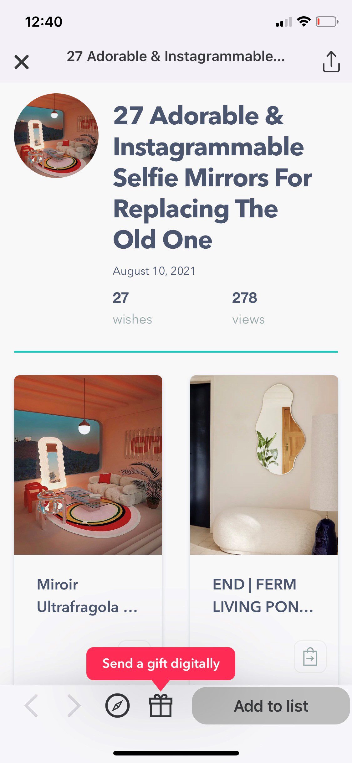 My favorite feature is the pre-curated gift lists that are readily available to sort through. It helps me find cool and unique pieces I wouldn’t have found on my own. One thing I’m really focused on right now is decorating my home, so I’ve been going through every single home décor related list I can. It not only gives me shops like Target and Wayfair, but cool and unique finds from Etsy.